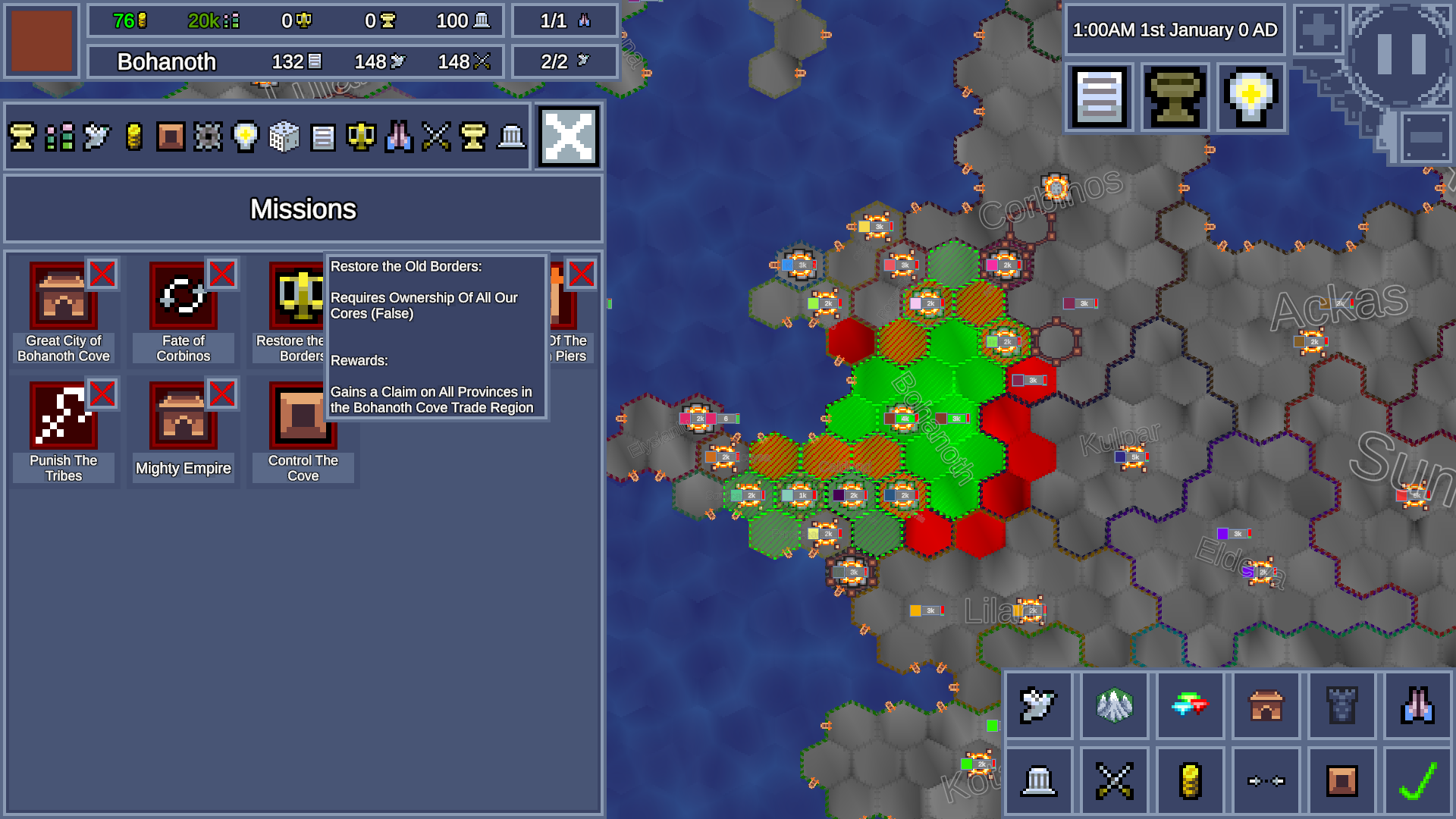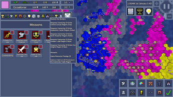 A map game inspired by my love of eu4. The game is nearly complete just missing some finishing touches. There are lots of features and unique content/flavour based on religion and government types as well as specific mission trees for important countries and regions.